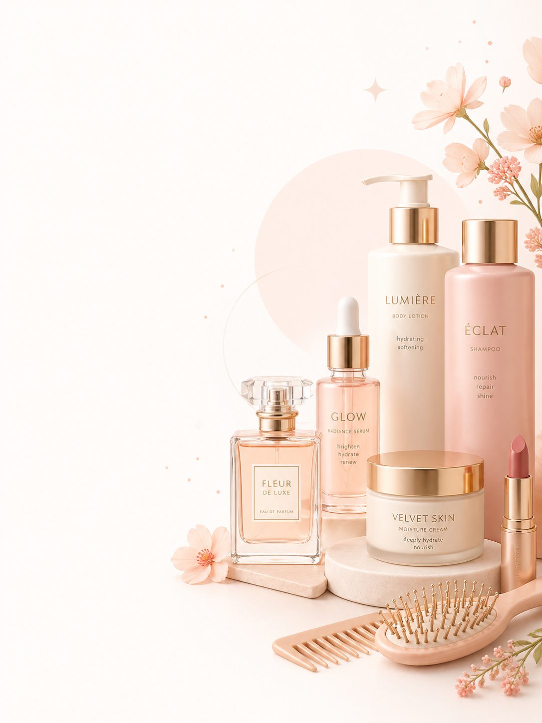 Skincare, haircare, perfumaria e rotina de cuidados pessoais com ótimo apelo de busca.