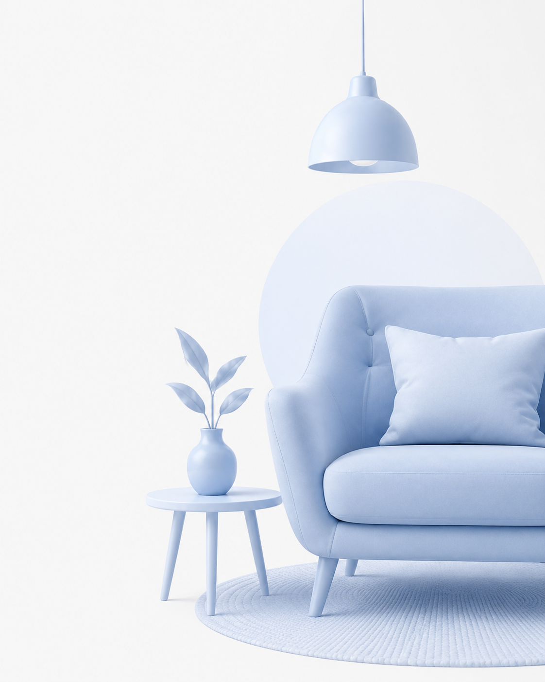 Móveis, organização e itens para o lar com espaço para conteúdo comercial e descoberta.