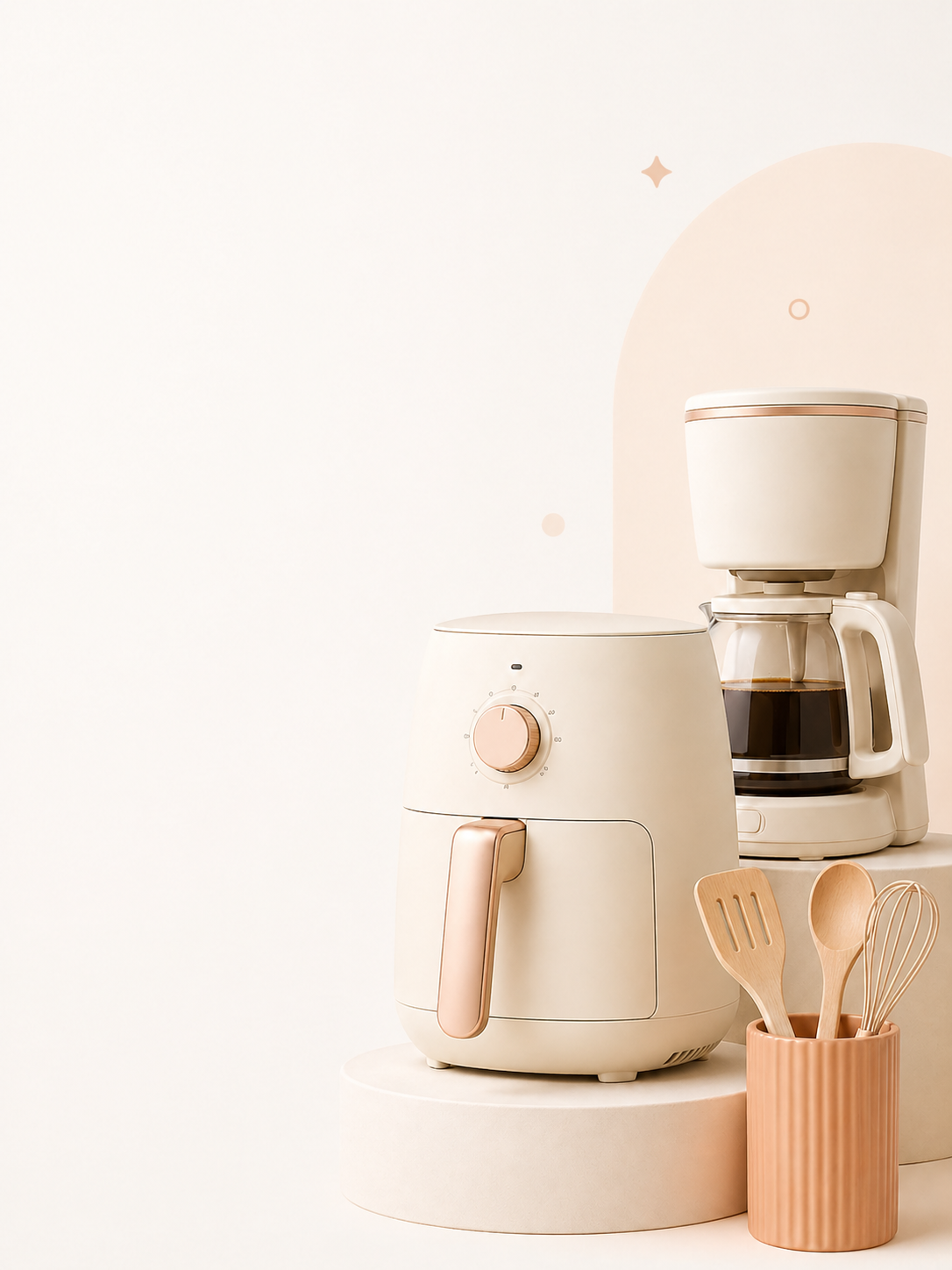 Airfryer, liquidificadores, cafeteiras e utilidades que convertem bem em pesquisa.