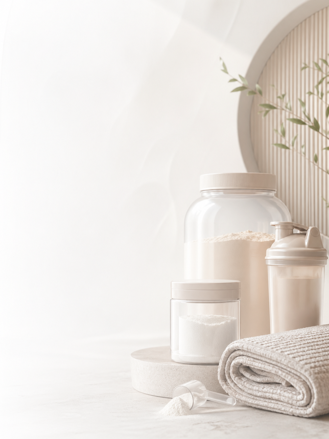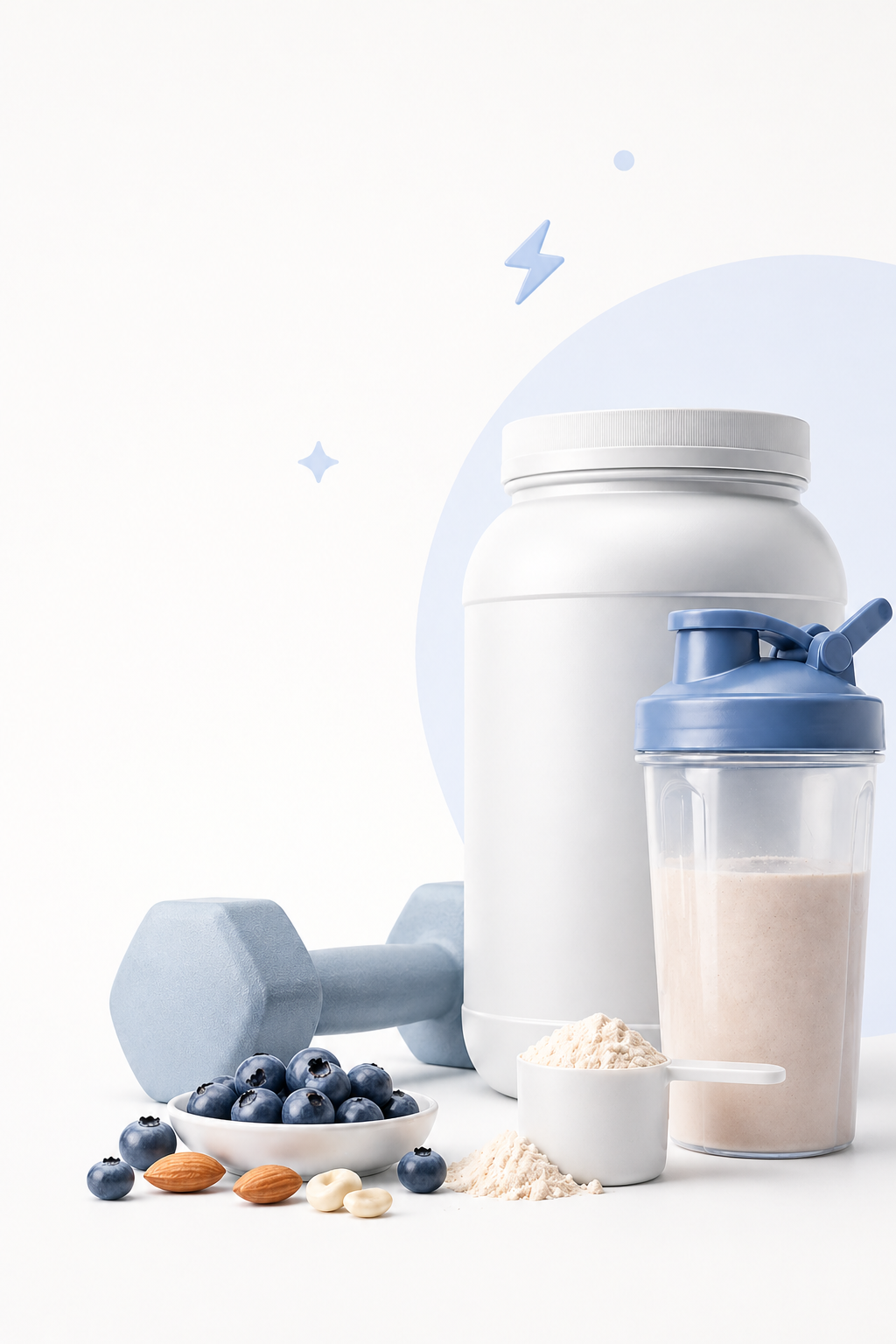Whey, creatina, pré-treino e produtos fitness com alta intenção comercial.